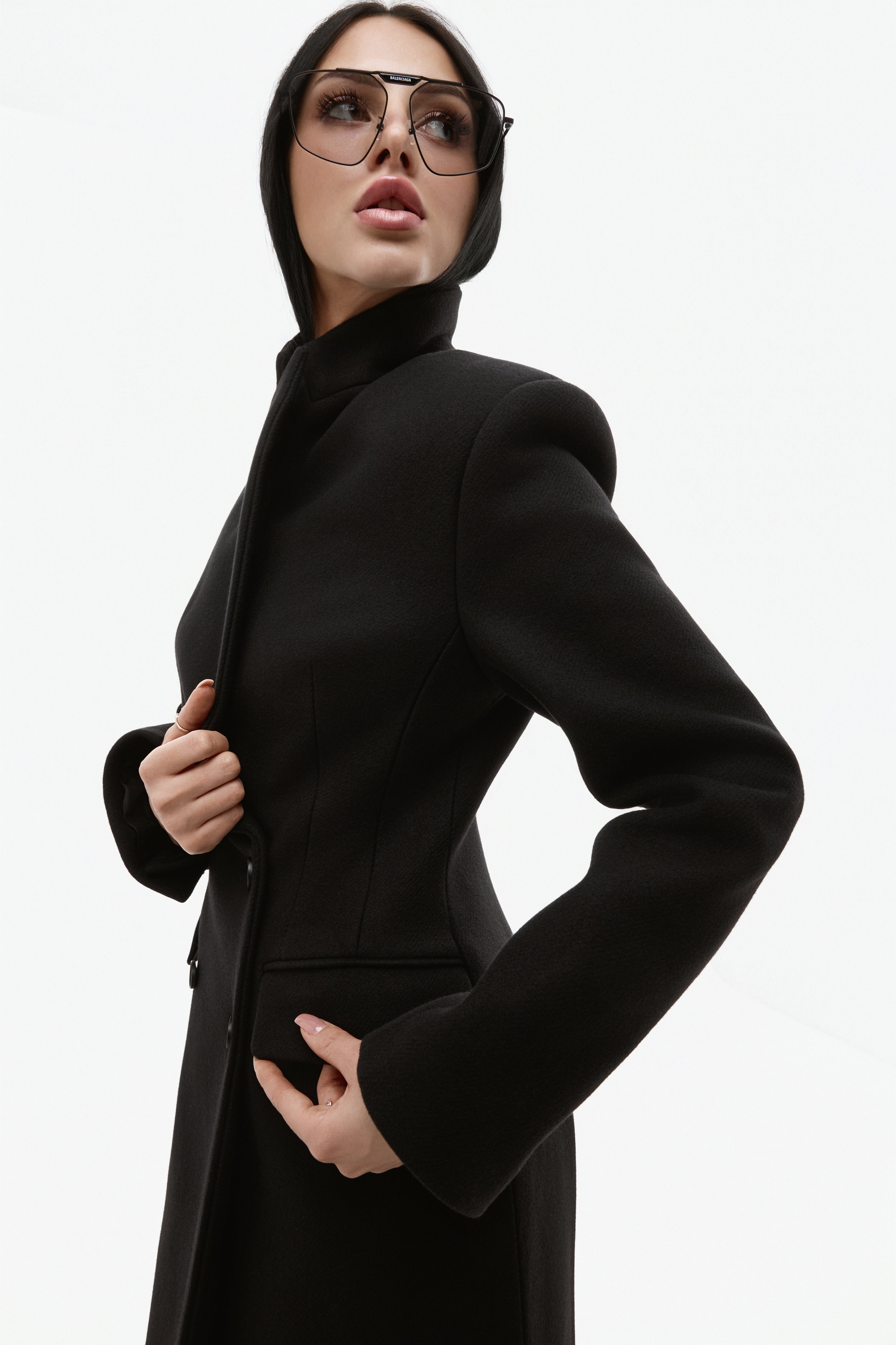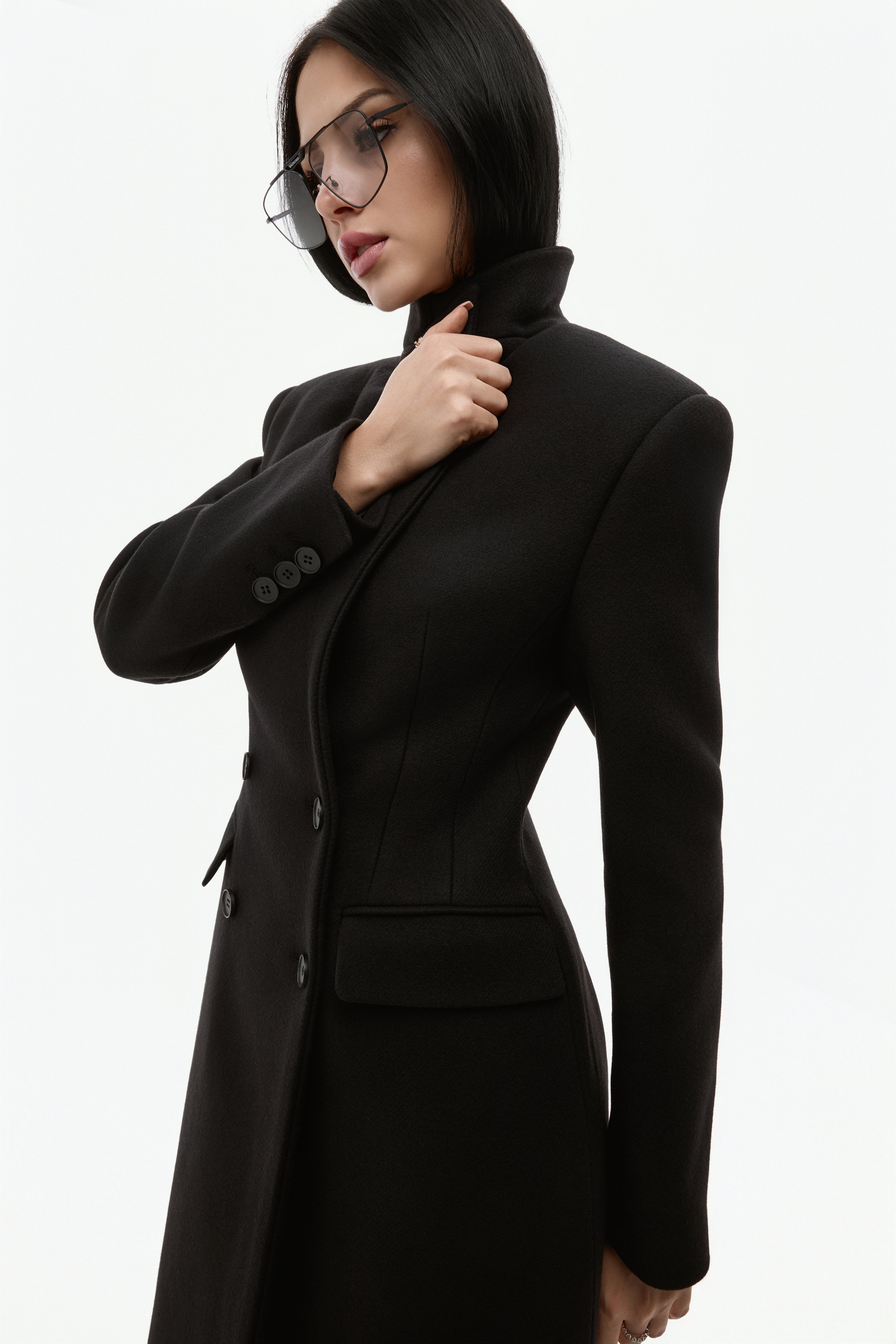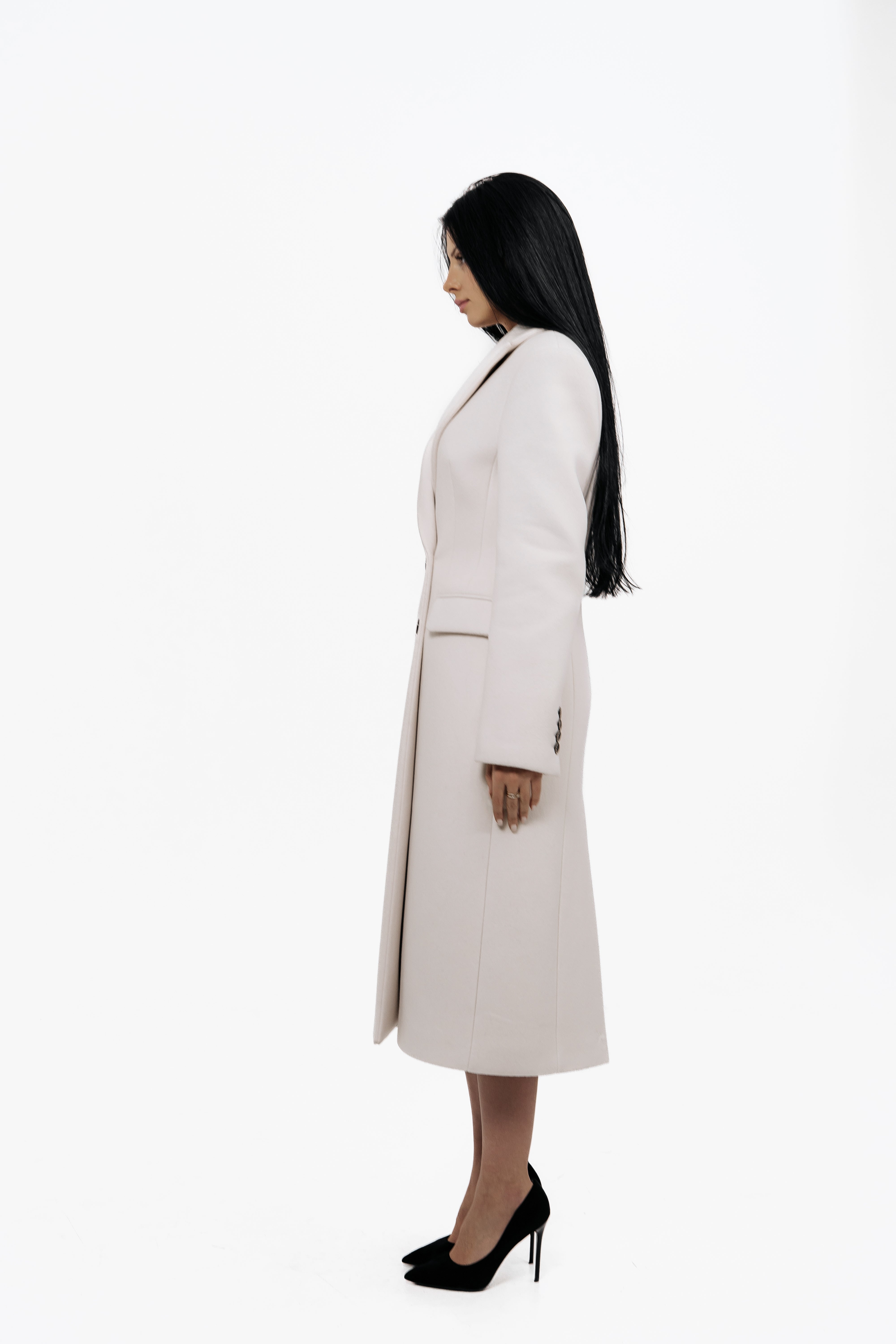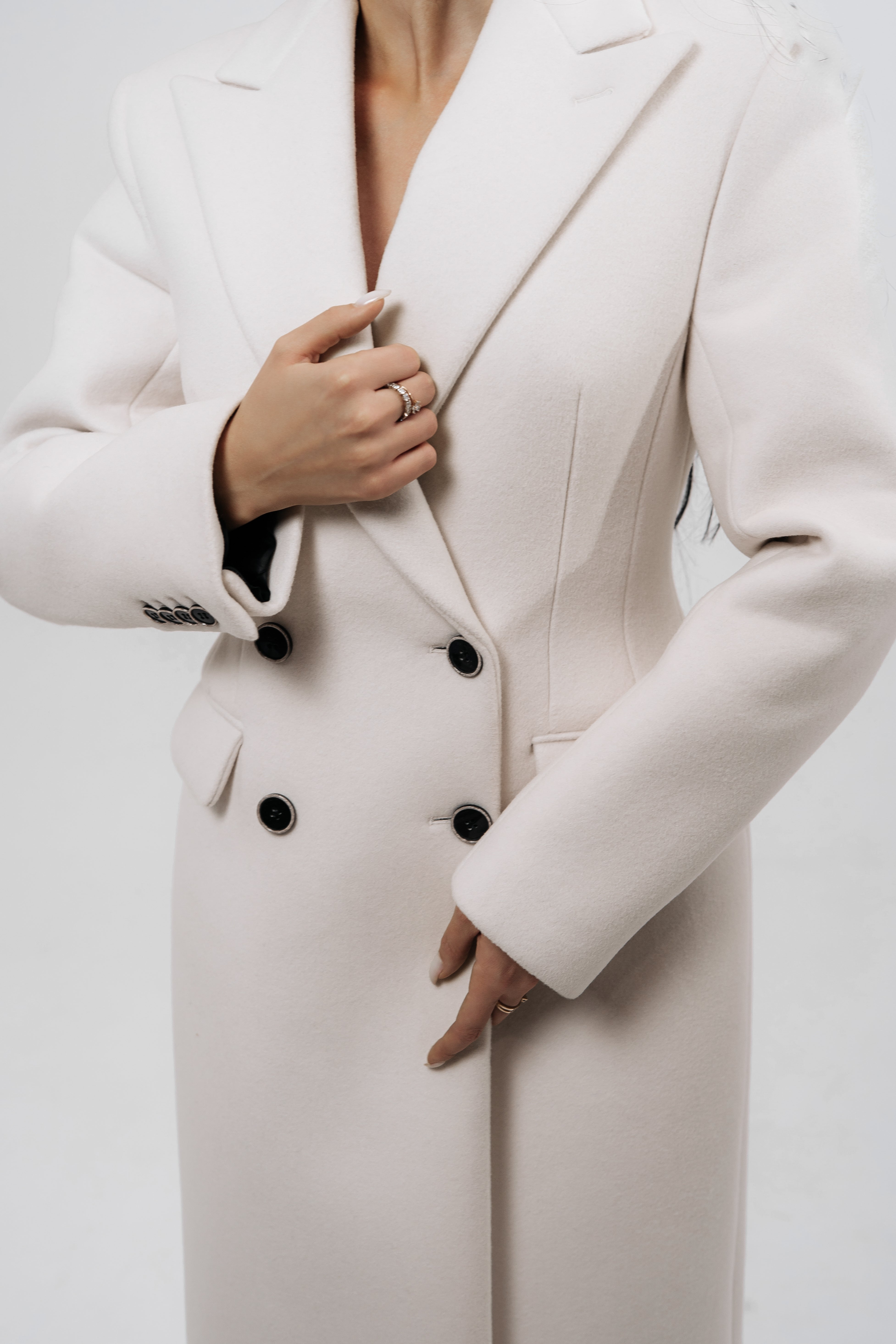 Довге двобортне пальто з вовни.